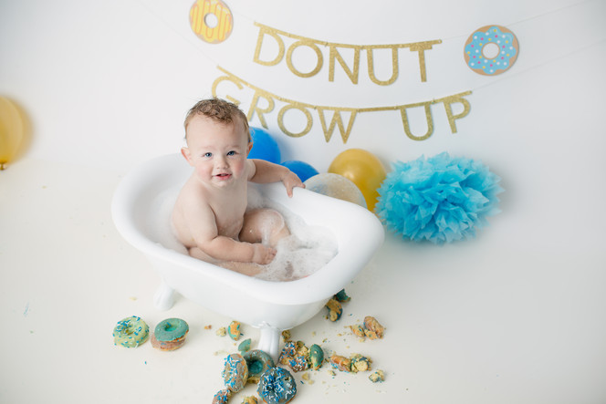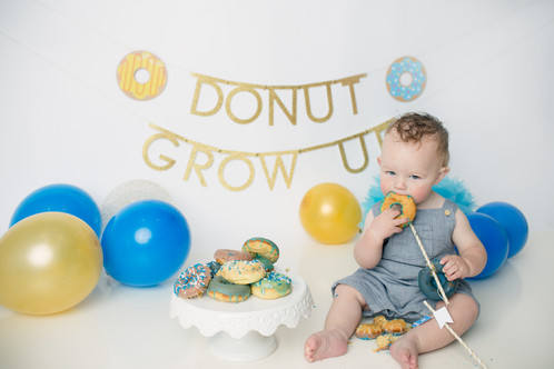 Cake smashes are one of my favourite types of shoots! These sessions usually combine my love of photography and setting up custom backdrops with my other love of baking. I have to say I was even more excited for Nash's smash because his Momma asked if we could do a Donut Smash and I have wanted to do one of these for a while now.