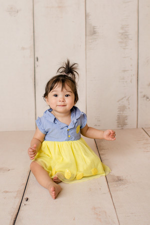How cute is her little lemon dress? One of my favourite things about doing some neutral photos prior to the cake smash is the opportunity for super cute or special outfits and I just love this one! As fun as cake smashes are, I find these photos a great opportunity for the photos to focus just on the little one.
